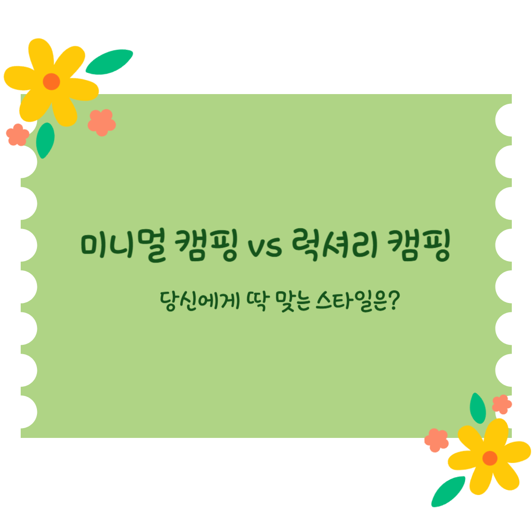 캠핑 스타일은 크게 **미니멀 캠핑과 럭셔리 캠핑**으로 나뉩니다. **내 라이프스타일에 맞는 캠핑 방법**을 선택하는 것이 중요합니다.
